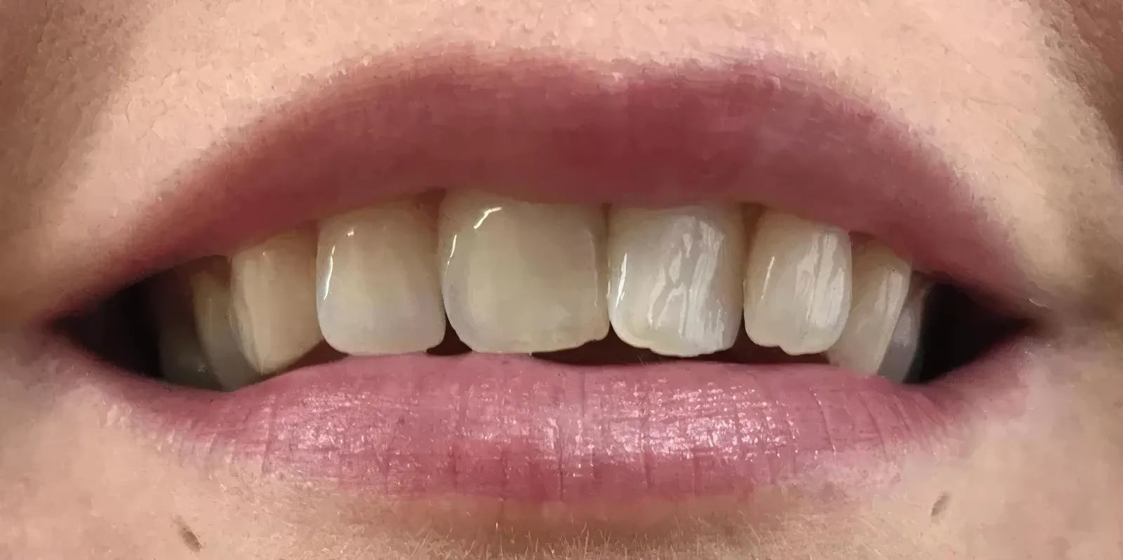 Sichtbar weißere Zähne durch violette Farbneutralisation – ohne Bleaching, ohne Peroxide.